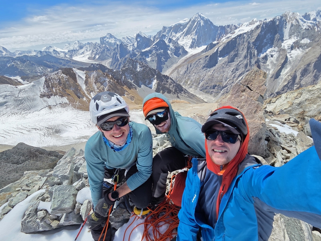 The next morning only 150 m of 40–50° snow separated us from the top — nothing technical, just a slog. Around 8 a.m. on the third day, we stood as the first humans ever on the summit of Chumik Kangri. We spent a few minutes soaking in the view — dozens of unclimbed peaks around us, and the few that had seen an ascent, untouched for decades.